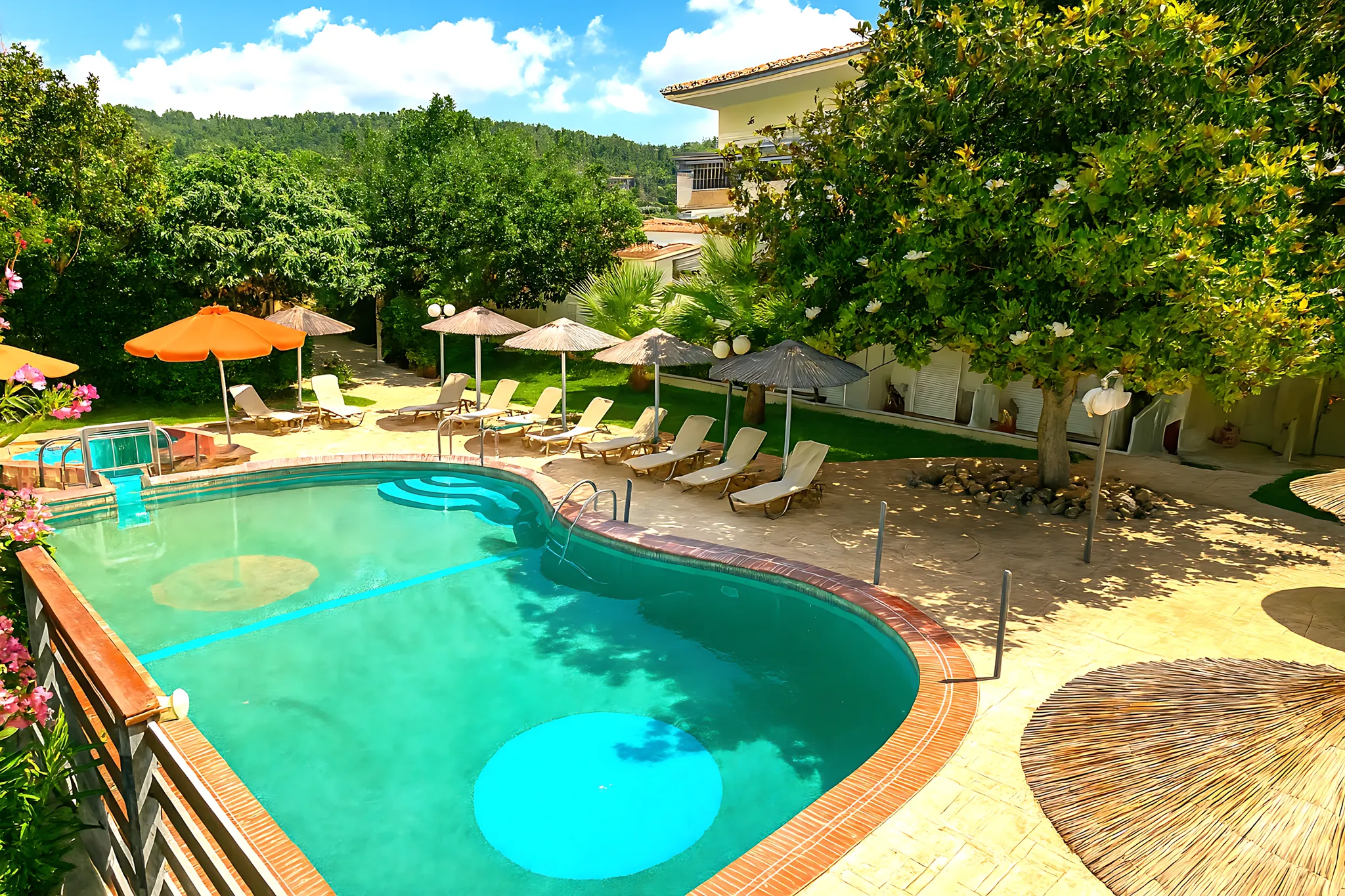 Greek Pride Themelis Studio offers a relaxing poolside experience with dedicated areas for both adults and children. Enjoy a refreshing swim or simply unwind under the sun, with certified lifeguards on duty to ensure comfort and safety throughout the day.